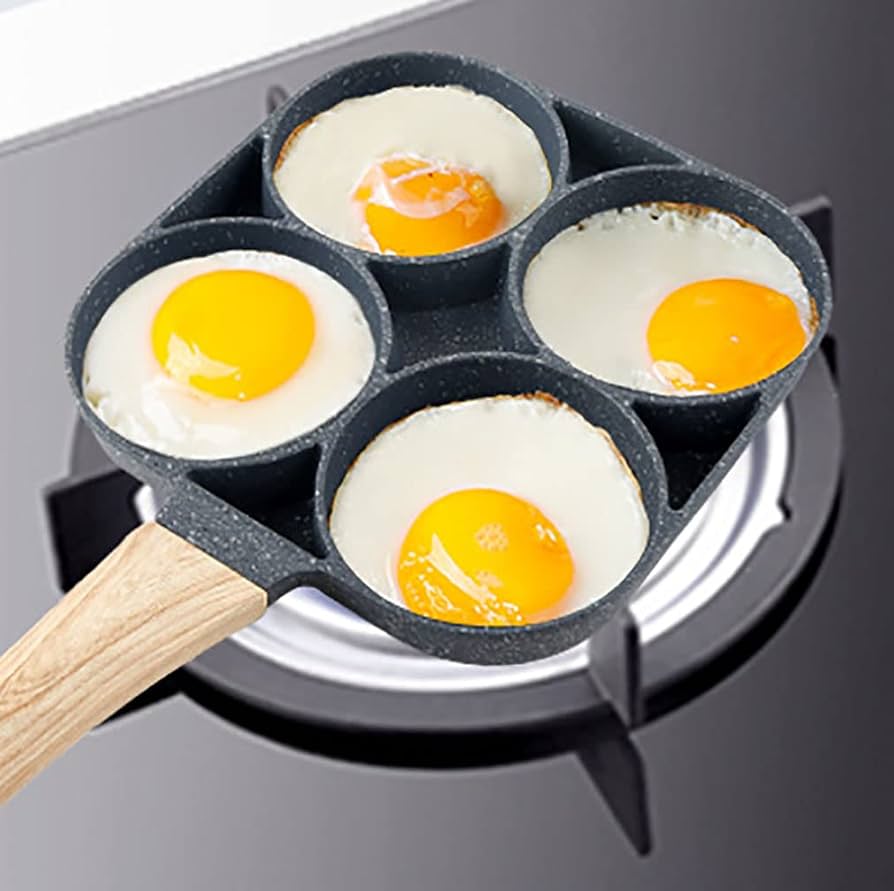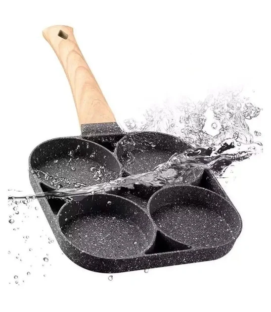 Порційна сковорідка з 4 відсіками – зручний аксесуар для швидкого приготування сніданку. Антипригарне покриття, стильна ручка з бакеліту та можливість готувати одразу 4 страви роблять її незамінною на кухні. Ідеальна для млинців, омлетів, панкейків та яєчні.